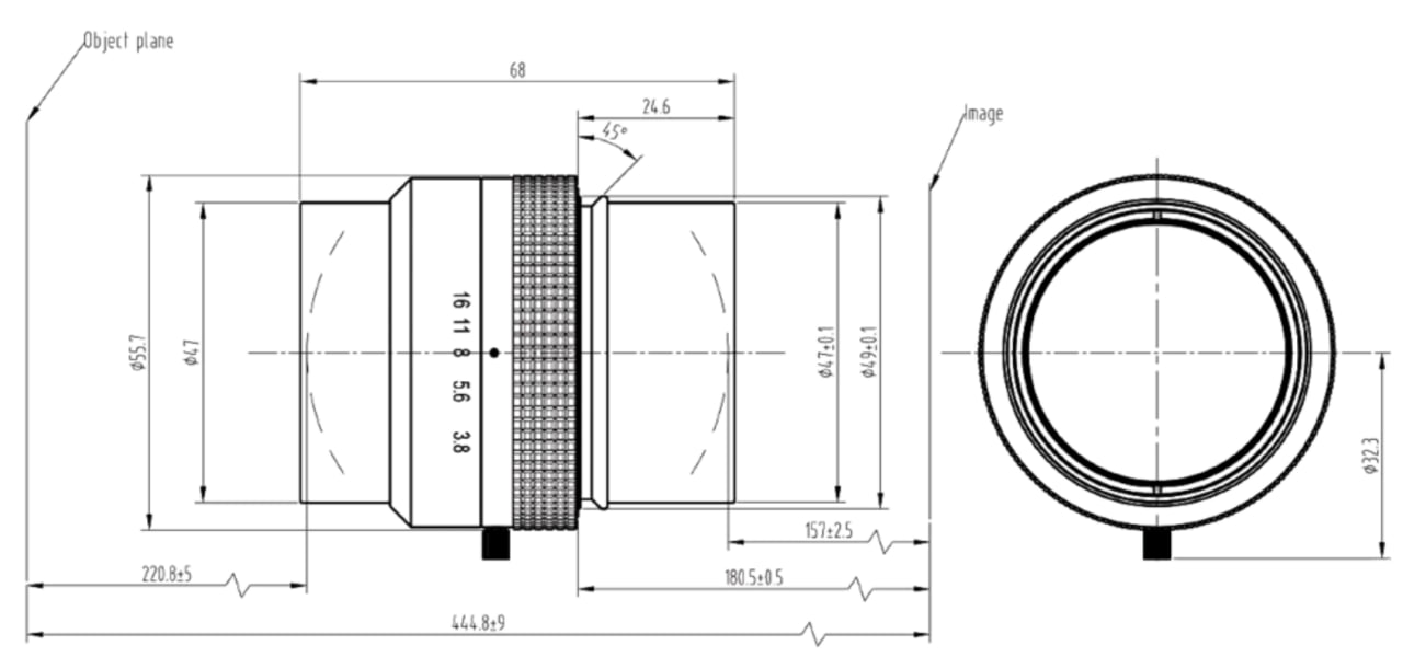 Объектив поддерживает сенсоры формата до 66 мм и обеспечивает разрешение уровня 16K с размером пикселя до 3,5 мкм, что делает его подходящим для прецизионного контроля и измерений. Оптическое увеличение 0,75× позволяет получать изображение с высокой плотностью деталей без существенного ограничения поля зрения.
