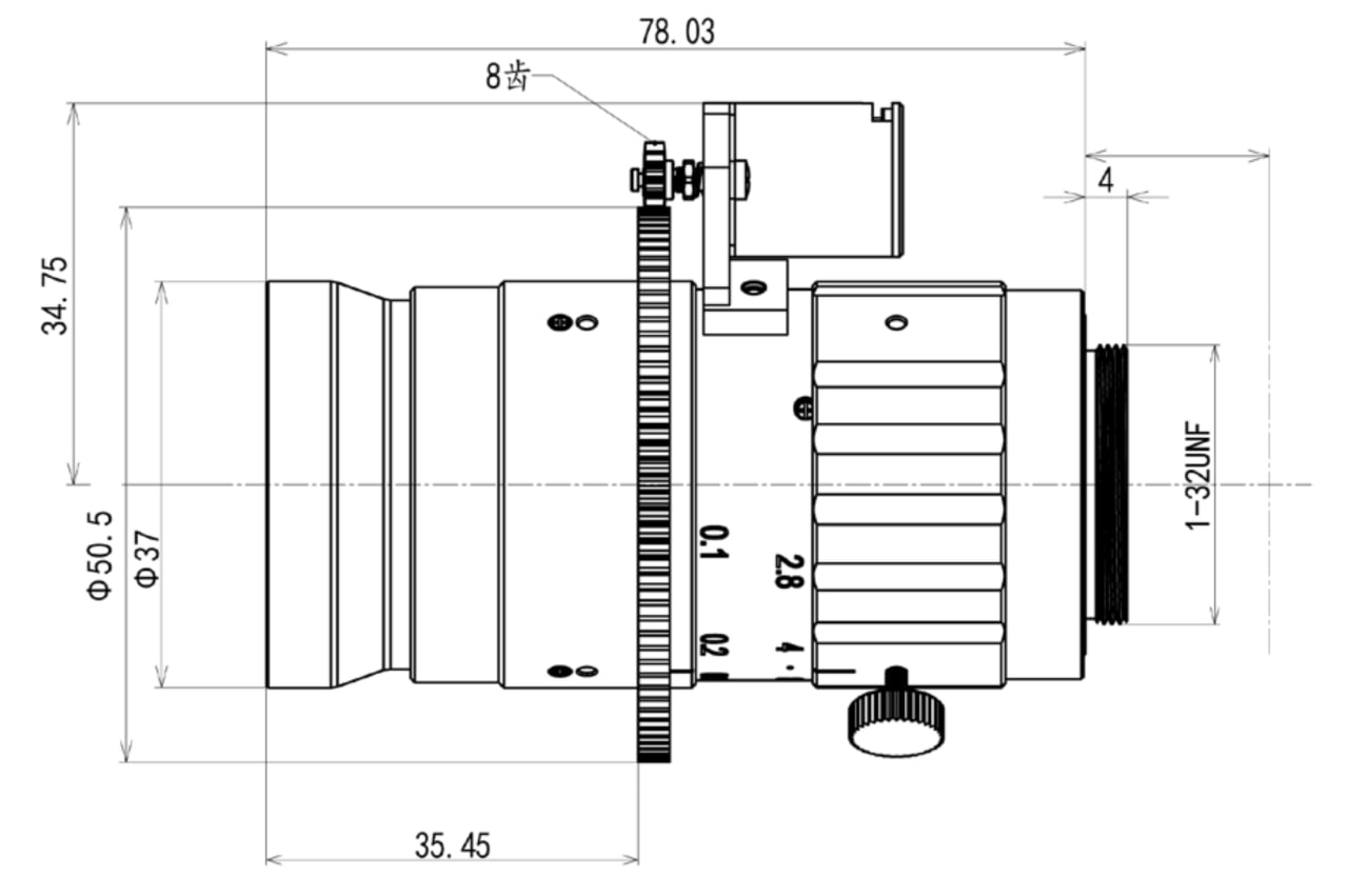 - Управление: моторизованный фокус, ручная диафрагма.