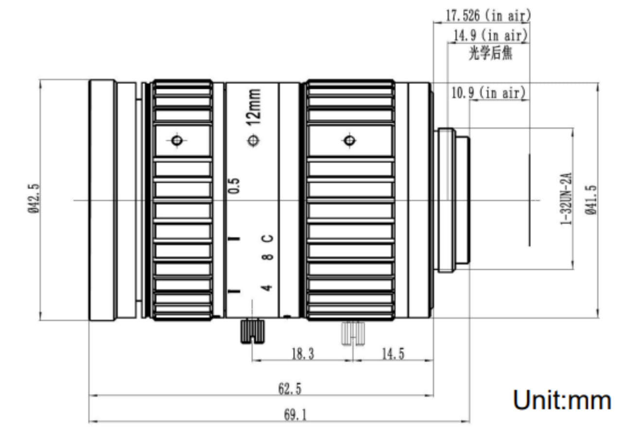 Объектив для 1" сенсоров с ИК-коррекцией. Обеспечивает разрешение 12 Мп с углом обзора свыше 68°, подходящее для задач машинного зрения, требующих одновременного захвата большой площади и максимальной детализации.
