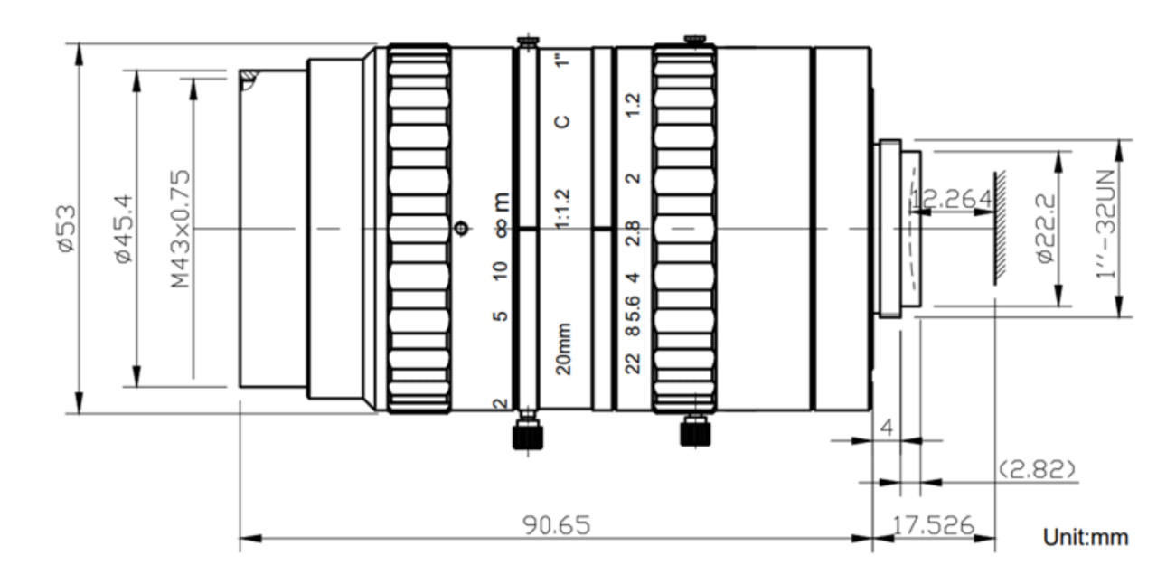 Объектив с ИК-коррекцией для 1" сенсоров. Обеспечивает изображение разрешением 10 Мп, подходящее для прецизионных задач машинного зрения, где требуется высокая детализация и точность цветопередачи.