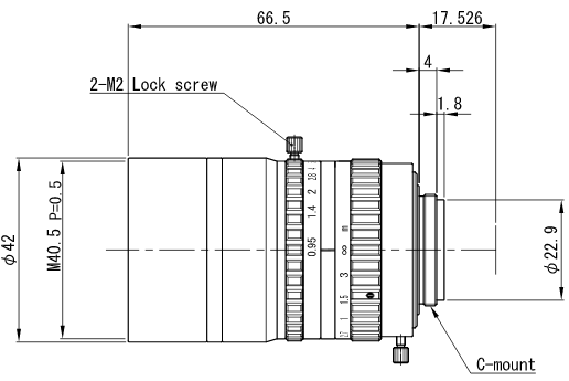 Однополевой объектив VIS, NIR диапазонов с фокусным расстоянием 17 мм и относительным отверстием F/0.95 — 16. Спектральное пропускание объектива ограничено диапазоном 0.4 — 0.9 мкм. Метод фокусировки: Ручной.