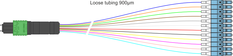 Применения: - Высокоскоростные волоконно-оптические сети; - Дата-центры; - Оптоволоконные сборки с разветвлением с разными оптоволоконными интерфейсами. |