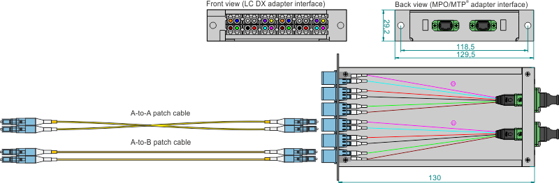 MPO/MTP® LGX блок + LC DX патч-корд |