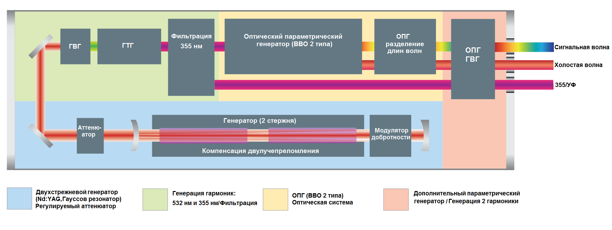 - Дополнительно возможно расширение диапазона перестройки в УФ область: 205-419 нм;