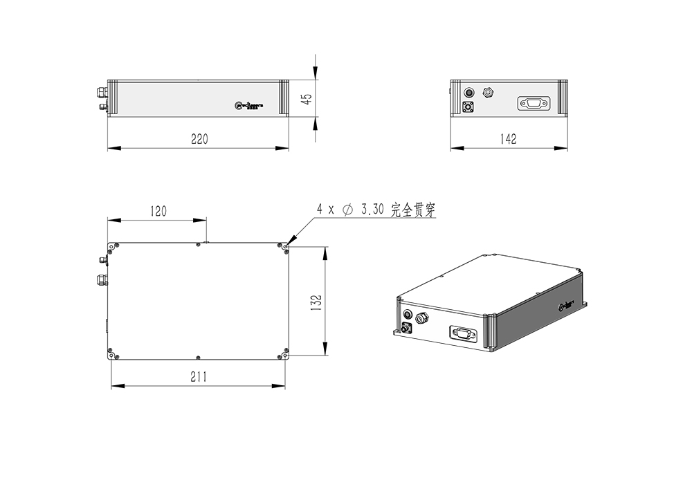 Размеры YFL-PS-1064-8/12-X (с модулем снижения частоты)