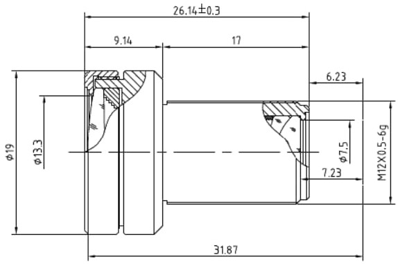 - Эффективные диаметры линз: Передний Ø13.3 мм, задний Ø7.5 мм;