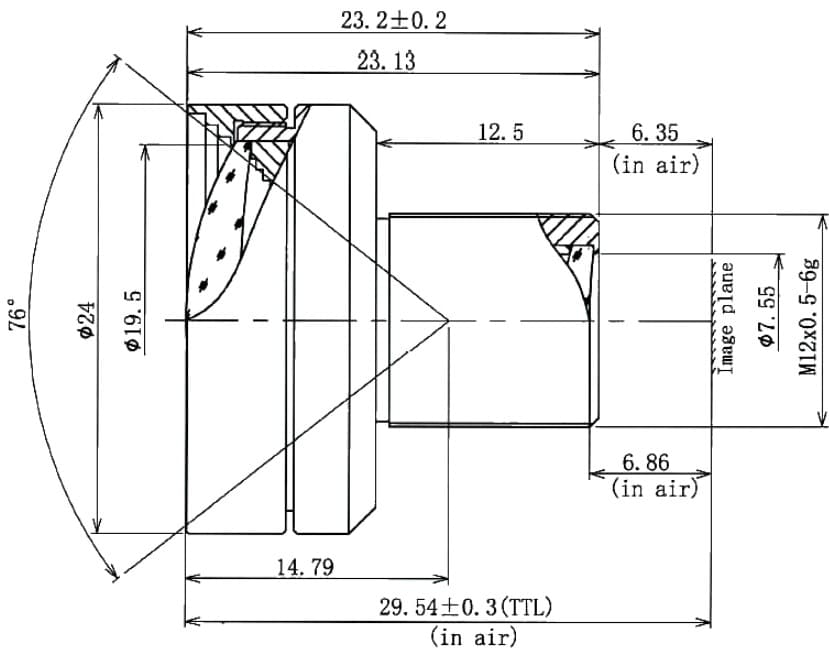 - Поле зрение (для формата 1/1.8"): Диагональное 76°, горизонтальное 64.5°, вертикальное 51°;