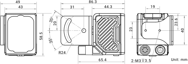 Измерение | Прямой угол: 80,1 мм × 43 мм × 44,3 мм (3,2" × 1,7" × 1,7") Прямой угол: 58,5 мм × 43 мм × 65,4 мм (2,3" × 1,7" × 2,6") |