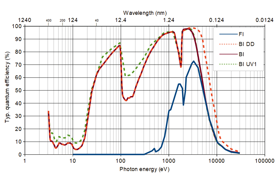 Передняя подсветка (FI), задняя подсветка (BI), с глубокообедненным слоем с подавлением эффекта интерференции (DD), антиотражающее покрытие, работающее в УФ области спектра (UV1)  |  ||||||||||