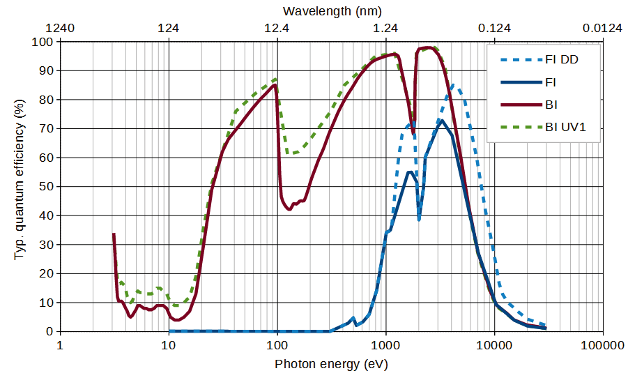 Передняя подсветка (FI), задняя подсветка (BI), с глубокообедненным слоем с подавлением эффекта интерференции (DD), антиотражающее покрытие, работающее в УФ области спектра (UV1) | |||