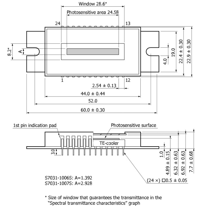 S7031-1006S - это семейство датчиков изображения FFT-CCD, специально разработанных для обнаружения при слабом освещении в научных приложениях. С помощью операции биннинга S7031-1006S можно использовать в качестве линейного датчика изображения с большой диафрагмой в направлении длины устройства. Это делает S7031-1006S подходящими для использования в спектрофотометрии. Операция биннинга обеспечивает значительное улучшение передачи данных и скорости обработки сигналов по сравнению с обычными методами, с помощью которых сигналы суммируются в цифровом виде с помощью внешнего cicuit. S7031-1006S также отличается низким уровнем шума и темнового сигнала (работает в режиме MPP). Это обеспечивает обнаружение при слабом освещении и длительное время интеграции, обеспечивая, таким образом, широкий динамический диапазон.