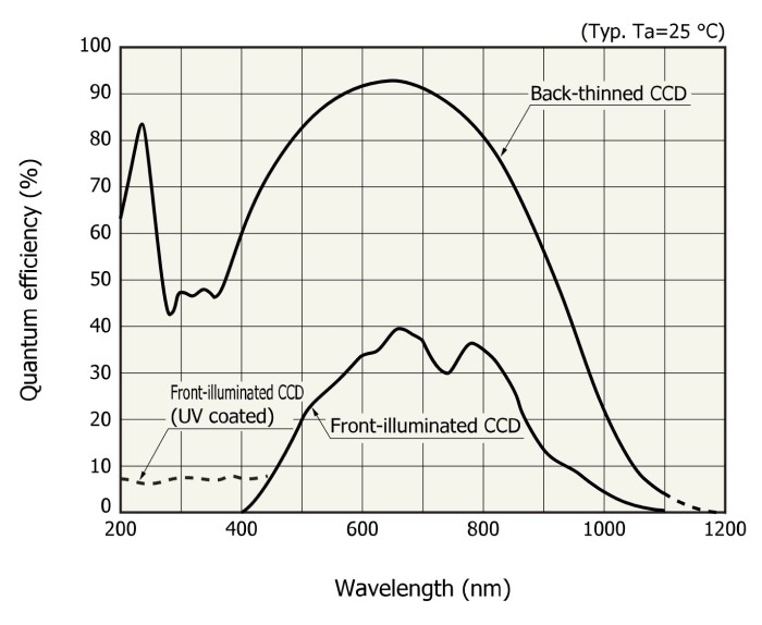 - Квантовая эффективность более 90% при длине волны максимальной чувствительности;