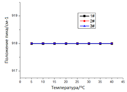 Рисунки 7 и 8 показывают стабильность температуры при измерениях ATR8300, которая сохраняется более одного часа (рисунок 8) для каждого температурного значения, в диапазоне 5-40оС. Измеряется образец ацетонитрила, частотный сдвиг менее 1 см-1 (рисунок 7) и изменение интенсивности пика, менее 10% (рисунок 8).