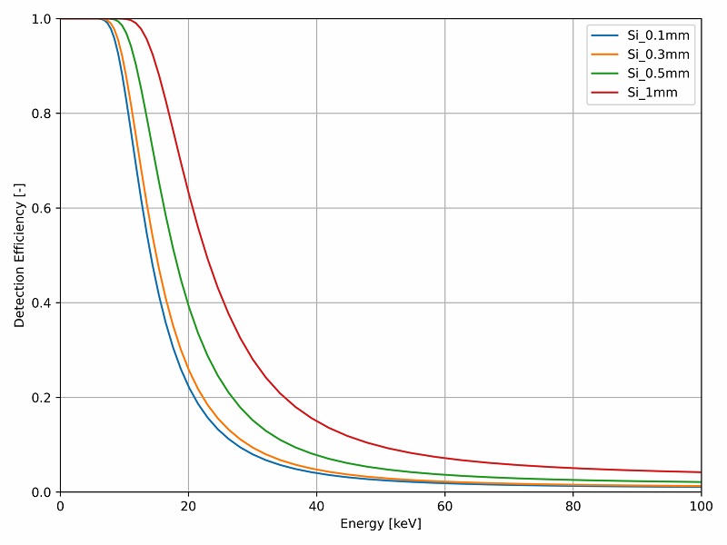 - Минимальная энергия регистрации: от 3 кэВ (Si) / 5 кэВ (CdTe)