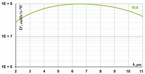 - спектральный диапазон длин волн от 2 до 11 мкм;
