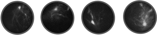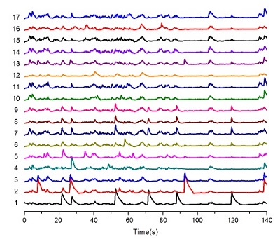 Ниже приведены несколько изображений глубокой кальциевой визуализации и трассировки флуоресценции нейронной активности в головном мозгу свободно двигающейся мыши.