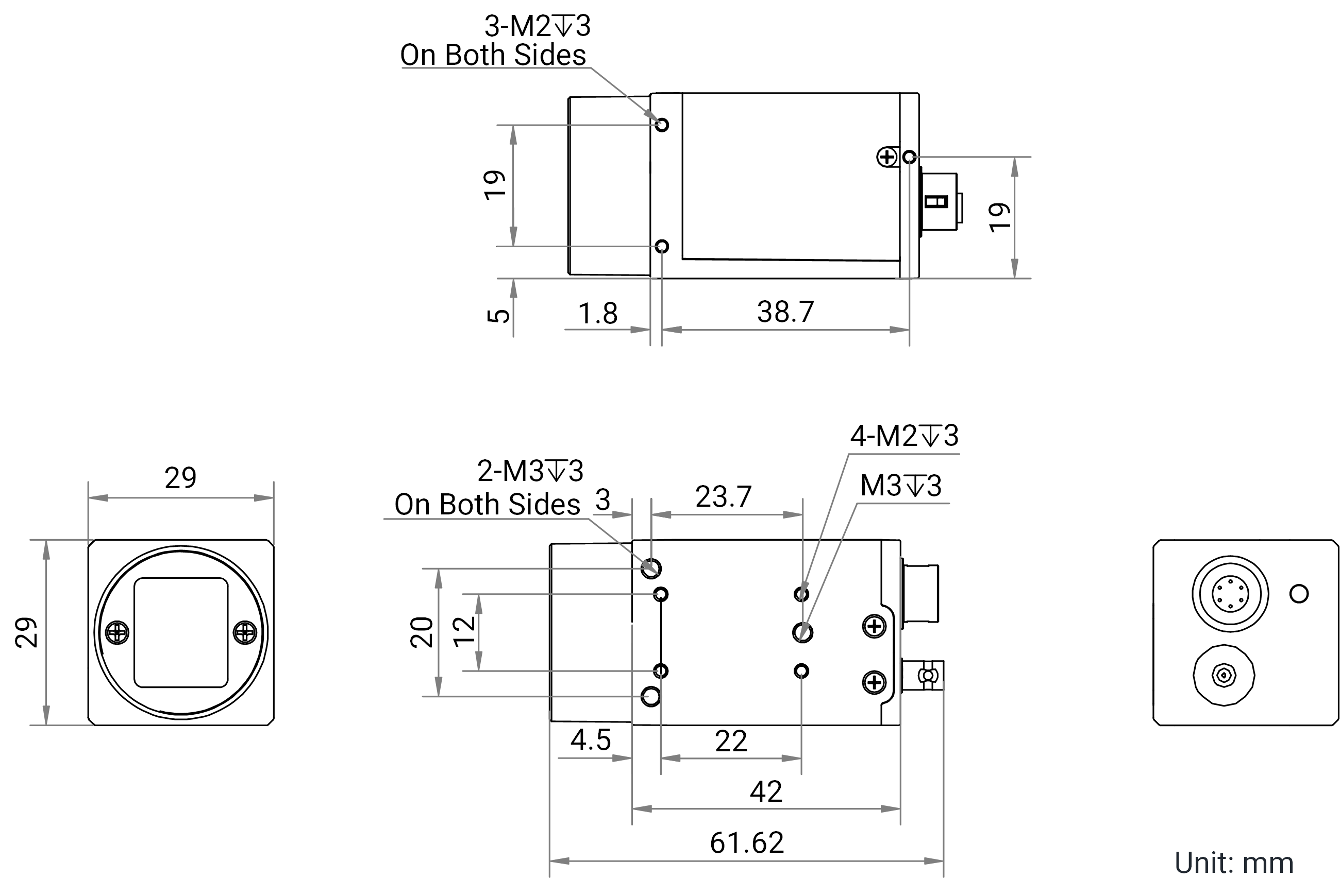 - Используется датчик CMOS с глобальным затвором, обеспечивающий широкий динамический диапазон, высокое отношение сигнал/шум и высокое качество изображения.