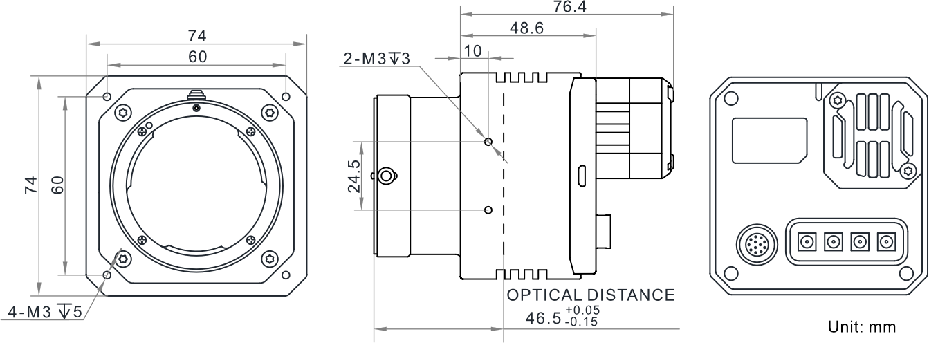 - Используется КМОП-матрица с глобальным затвором, обеспечивающая широкий динамический диапазон, высокое отношение сигнал/шум и высокое качество изображения.
