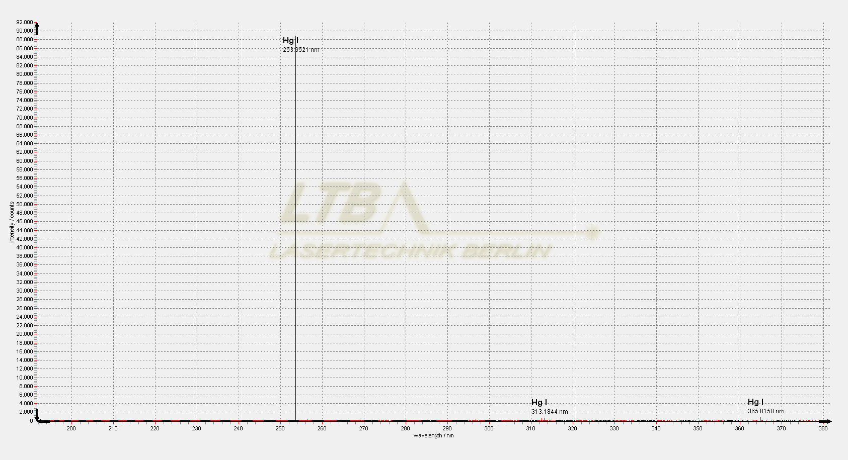 ARYELLE Butterfly: спектр ртутной лампы при 253 нм, УФ диапазон