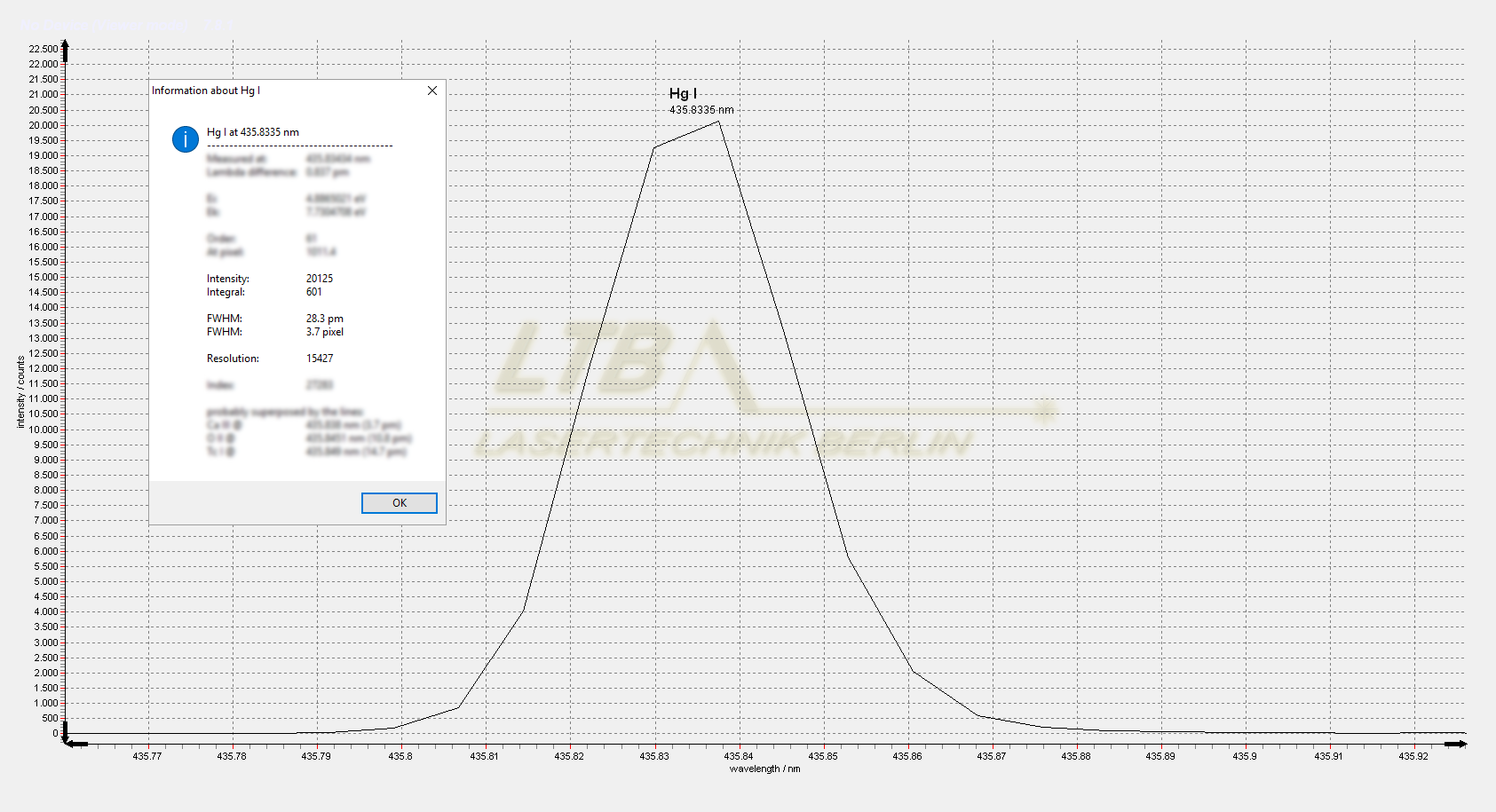ARYELLE Butterfly: спектр ртутной лампы при 435 нм, видимый диапазон