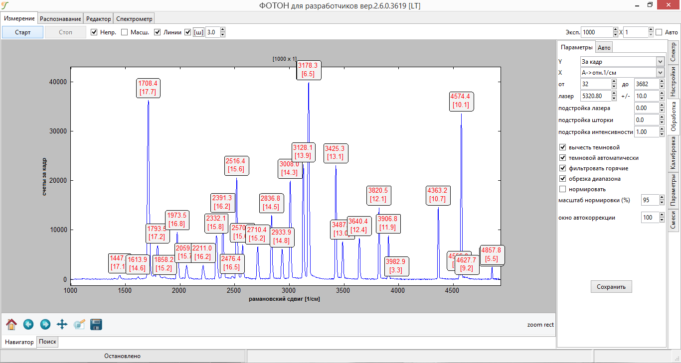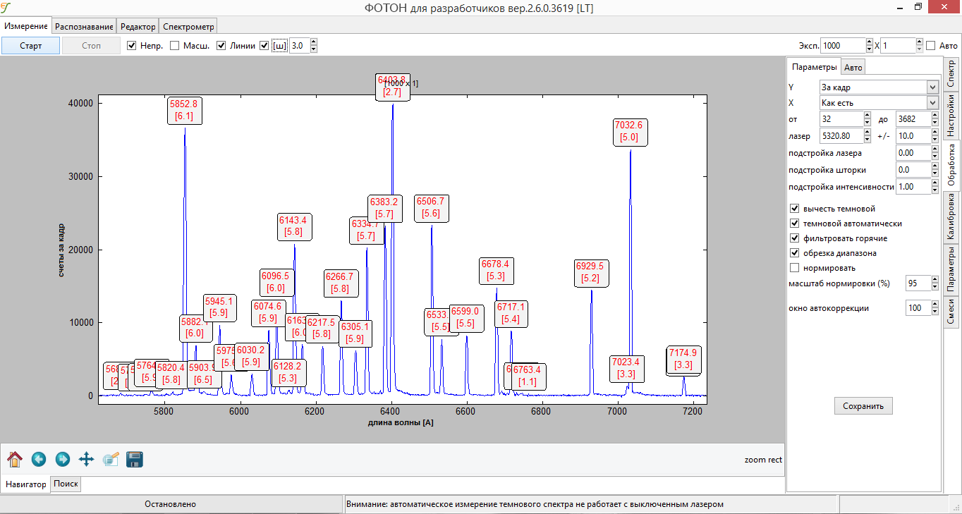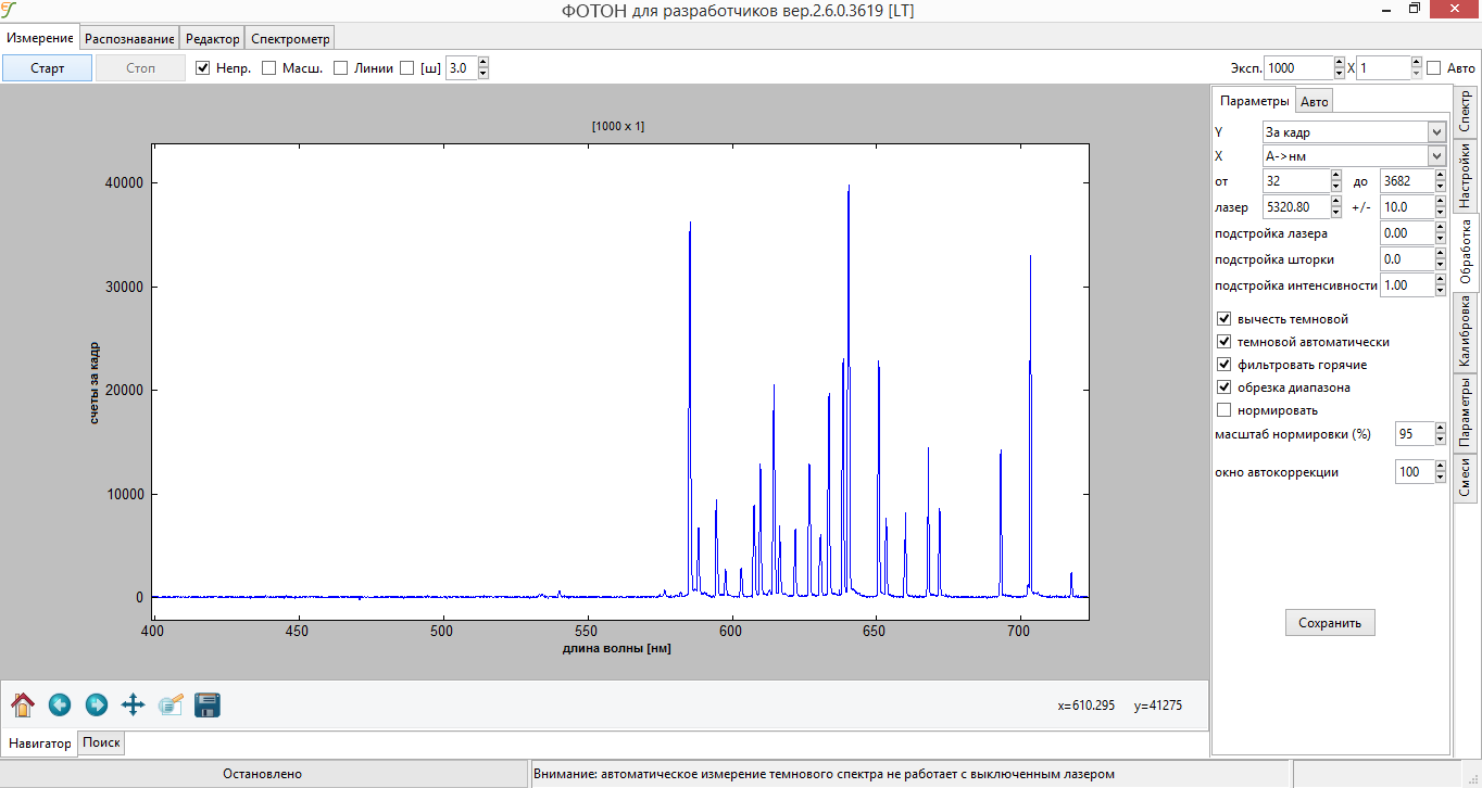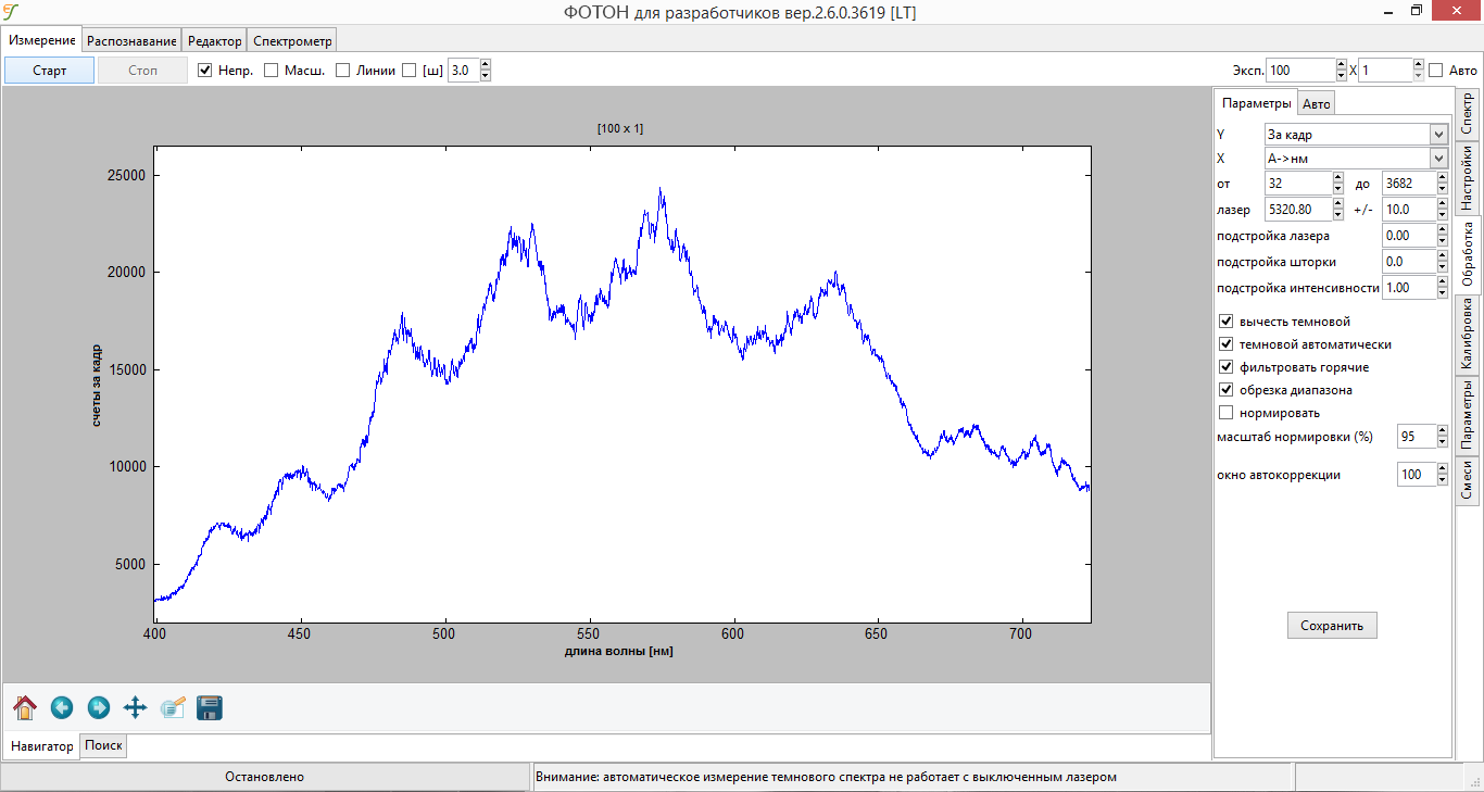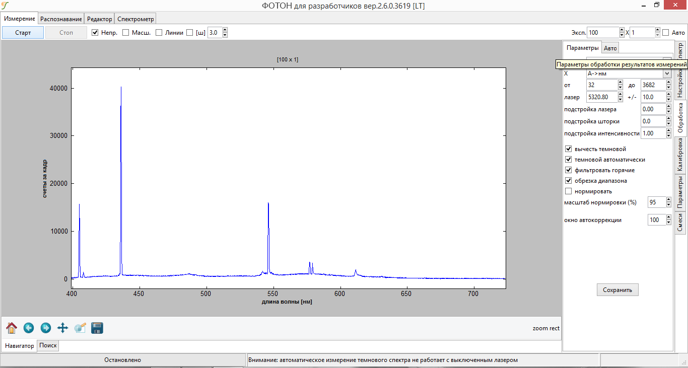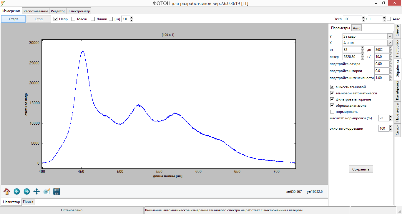 Пример работы спектрометра ФОТОН и прилагаемого ПО