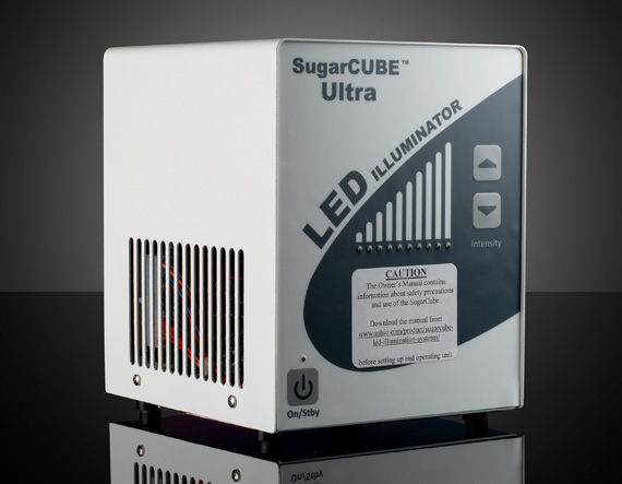 Светодиодный осветитель SugarCUBE™ Ultra имеет мощность более 4000 люмен и мощность 9800 мВт. Этот белый светодиодный осветитель является идеальной заменой стандартным галогенным осветителям, поскольку он служит в 60 раз дольше, чем галогенные лампы, и его никогда не нужно заменять. Светодиодный осветитель SugarCUBE™ Ultra управляется вручную через панель управления на передней панели устройства или через RS-232 для легкой интеграции в системы, управляемые компьютером. Также доступно дополнительное простое в использовании программное обеспечение. Для подключения световода к осветителю требуется оптоволоконный адаптер. Чтобы максимально увеличить яркость ультрабелого осветителя, мы рекомендуем использовать жидкостный оптоволоконный световод диаметром ½ дюйма или больше.