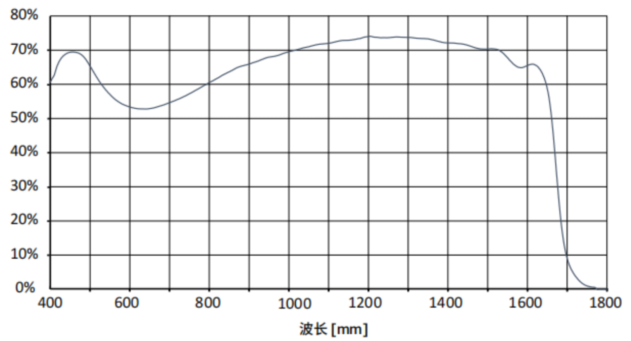 Типичный отклик квантовой эффективности сенсора BA9092 SensWAR в диапазоне 400–1700 нм.