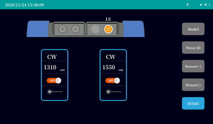 - Быстрые настройки, включая длину волны, диапазон испытаний, ширину импульса, время и т.д.