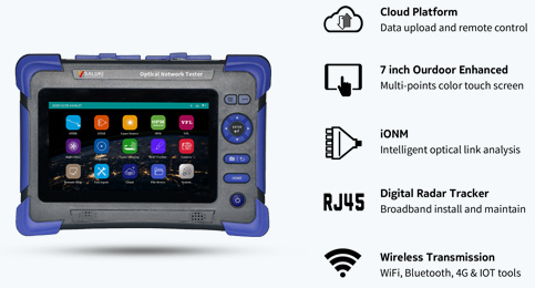 - Стандартная конфигурация: OTDR, Интеллектуальная карта оптической сети (iONM), LS, VFL, OPM, Оптическое определение торца, Многоядерное измерение, Проверка оптических потерь, Управление файлами, Беспроводная передача данных, отслеживание кабеля RJ45, Лазерная дальнометрия, Удаленная помощь, Ремонт одним ключом, Камера, Bluetooth, GPS&BDS.