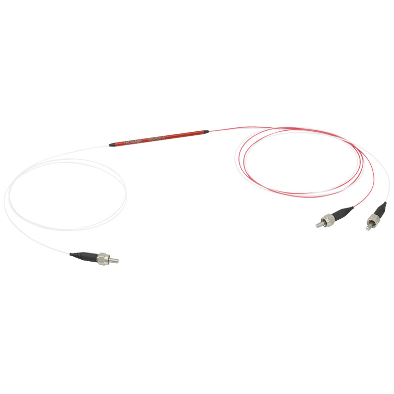 TM50R2S1A - Оптоволоконный разветвитель 1x2, многомодовые волокна, ступенчатый профиль показателя преломления, сердцевина: Ø50 мкм, 0.22 NA, рабочий диапазон: 400 - 900 нм, деление сигнала: 90:10, SMA905 разъемы, Thorlabs