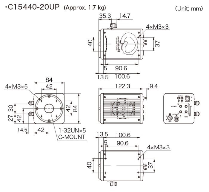 C-Mount (стандартное), F-Mount (C15440-20UP01) |