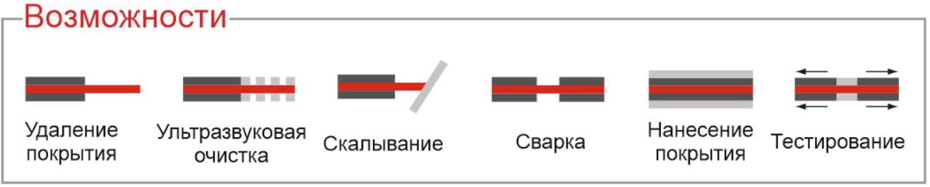 Универсальные системы Thorlabs Vytran® All-in-One позволяют проводить зачистку, очищение, скалывание, сращивание и повторное покрытие волокна. Все перечисленные процессы обработки оптоволокна производятся на одной станции!