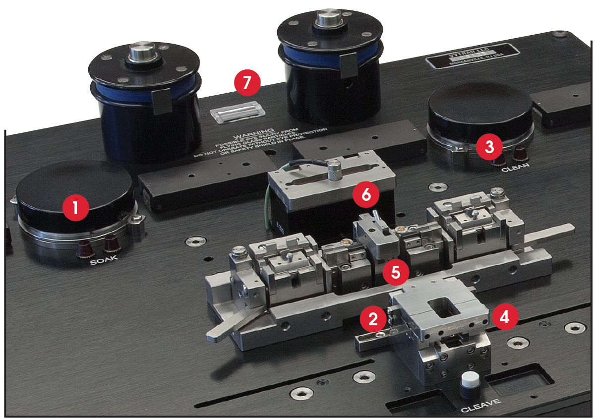1. Замачивание Станция для замачивания волокон с покрытием, которые требуют предварительного замачивания в растворителе для размягчения покрытия перед удалением. 2. Снятие покрытий Станция термомеханической зачистки обеспечивает быстрый одностадийный процесс для безопасного удаления акрилатных покрытий при сохранении целостности волокна. |