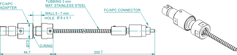 Вакуумные гибридные выводы доступны с интерфейсами адаптеров FC и SMA905 и со многими видами оптических волокон (SM, MM и PM). Оптическое волокно может быть защищено трубкой из ПТФЭ или гибкой оплеткой из нержавеющей стали.