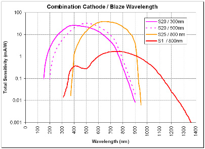 - Решетка S1 и 150 штр./мм, светящаяся при 800 нм: 300-1400 нм.