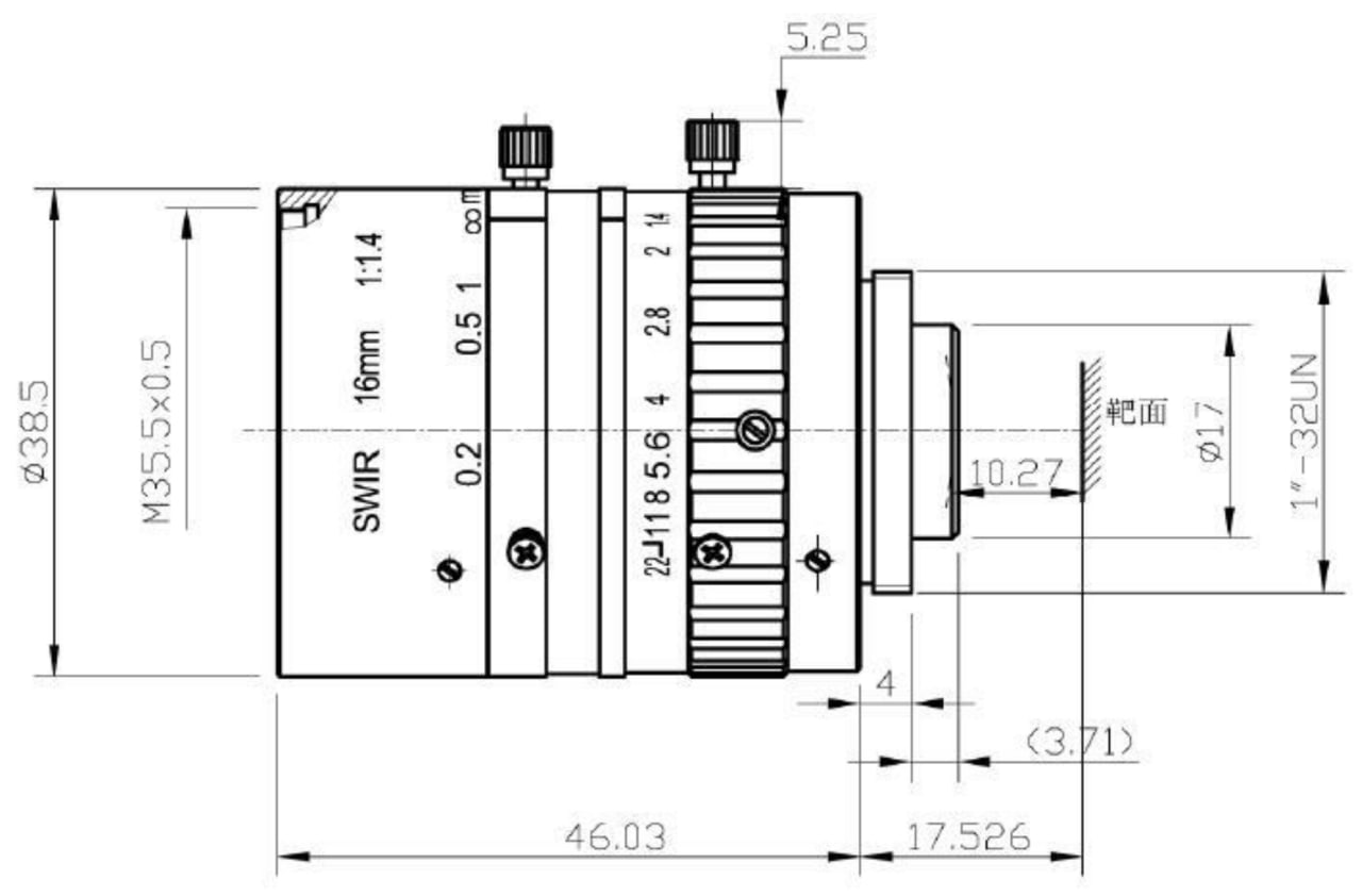 Объектив для коротковолнового ИК-диапазона (SWIR 900–1700 нм) с фокусным расстоянием 16.3 мм. Подходит для детализированной съёмки удалённых объектов при низкой освещённости.