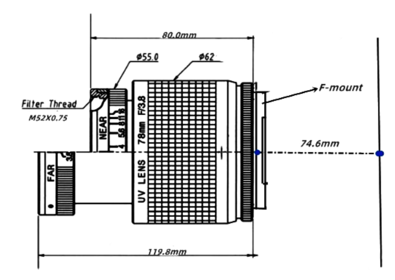 Универсальный УФ-объектив с фокусным расстоянием 78 мм и диафрагмой F3.8–F16, разработанный для работы в широком спектральном диапазоне. Объектив совместим с полнокадровыми сенсорами (35 мм) и оснащён креплением F-Mount.