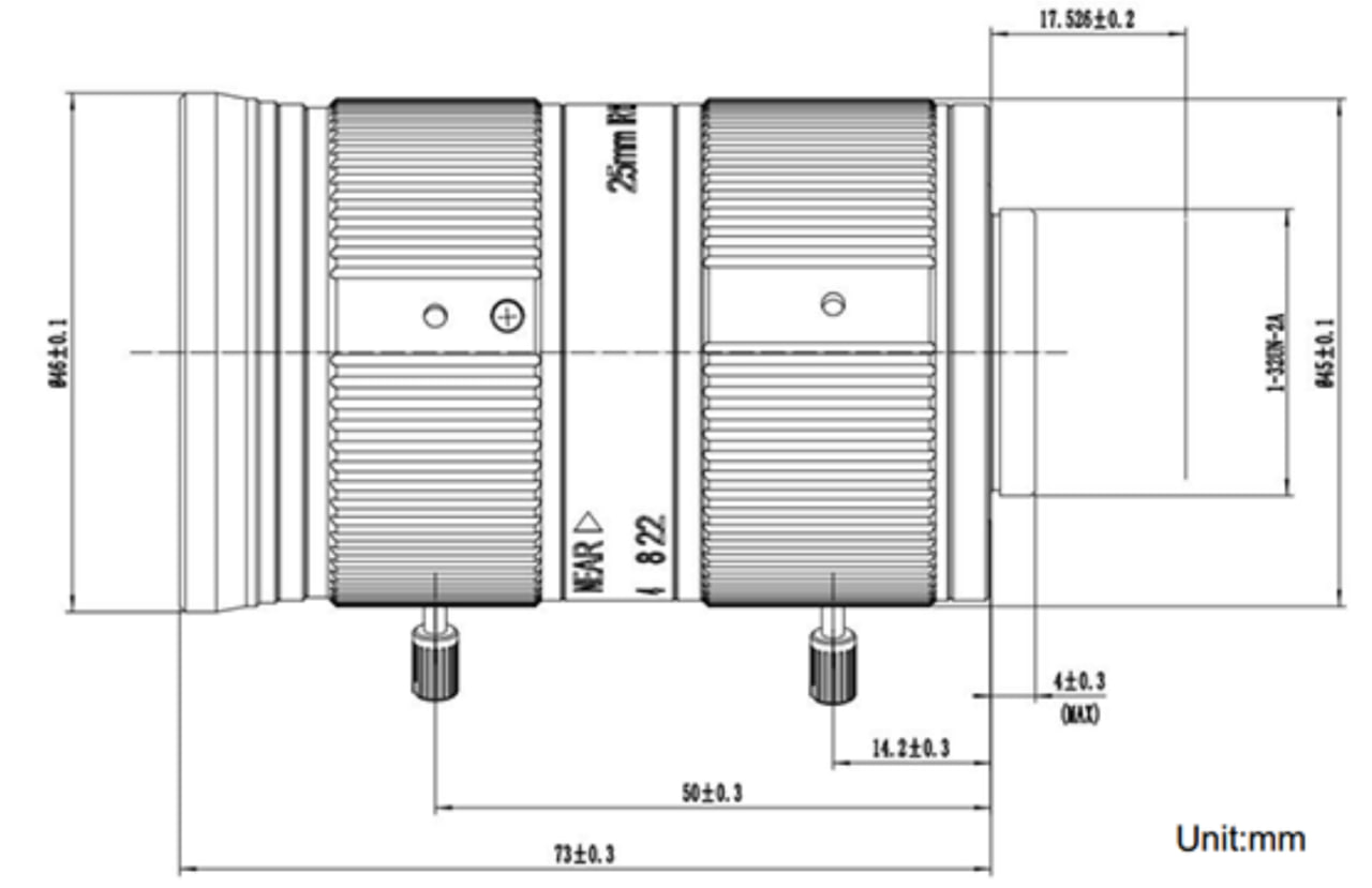 Объектив с коррекцией в инфракрасном диапазоне с фокусным расстоянием 25 мм и диафрагмой F1.4. Обеспечивает разрешение 12 мегапикселей для сенсоров формата 1,1 дюйма и оптимизирован для работы в спектральном диапазоне 420–850 нм.
