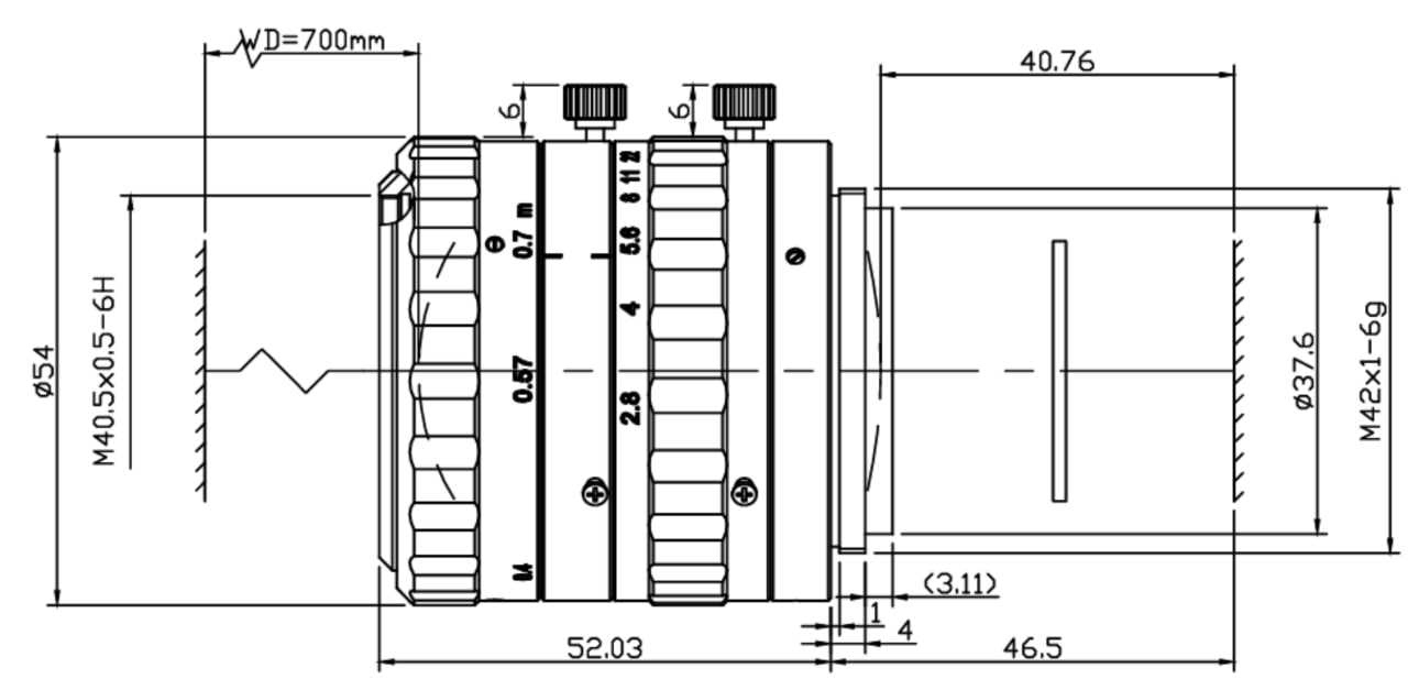 Объектив с ИК-коррекцией с фокусным расстоянием 50 мм и числовой апертурой F2.8. Обеспечивает разрешение 18 Мп для сенсоров формата 30 мм и работу в диапазоне 400–900 нм с оптимизированной цветопередачей.