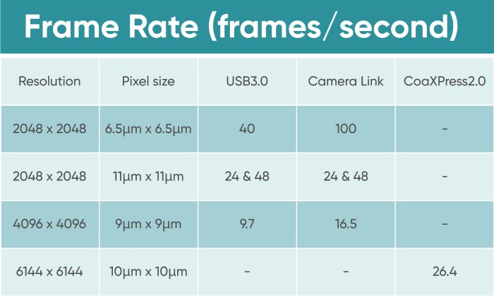 CameraLink, USB3.0, CoaxPress 2.0 |