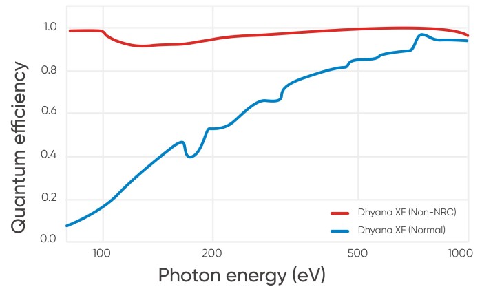 sCMOS-сенсоры нового поколения с обратной подсветкой без просветляющего покрытия расширяют возможности камеры по обнаружению вакуумного ультрафиолетового света (VUV), экстремального ультрафиолетового света (EUV) и мягких рентгеновских фотонов с квантовой эффективностью, приближающейся к 100%. Кроме того, датчик демонстрирует превосходную устойчивость к радиационному повреждению в приложениях для обнаружения мягких рентгеновских лучей.