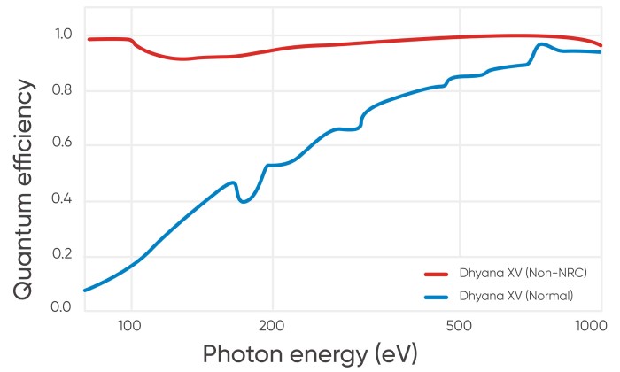 sCMOS-сенсоры нового поколения с обратной подсветкой без просветляющего покрытия расширяют возможности камеры по обнаружению вакуумного ультрафиолетового света (VUV), экстремального ультрафиолетового света (EUV) и мягких рентгеновских фотонов с квантовой эффективностью, приближающейся к 100%. Кроме того, датчик демонстрирует превосходную устойчивость к радиационному повреждению в приложениях для обнаружения мягких рентгеновских лучей.