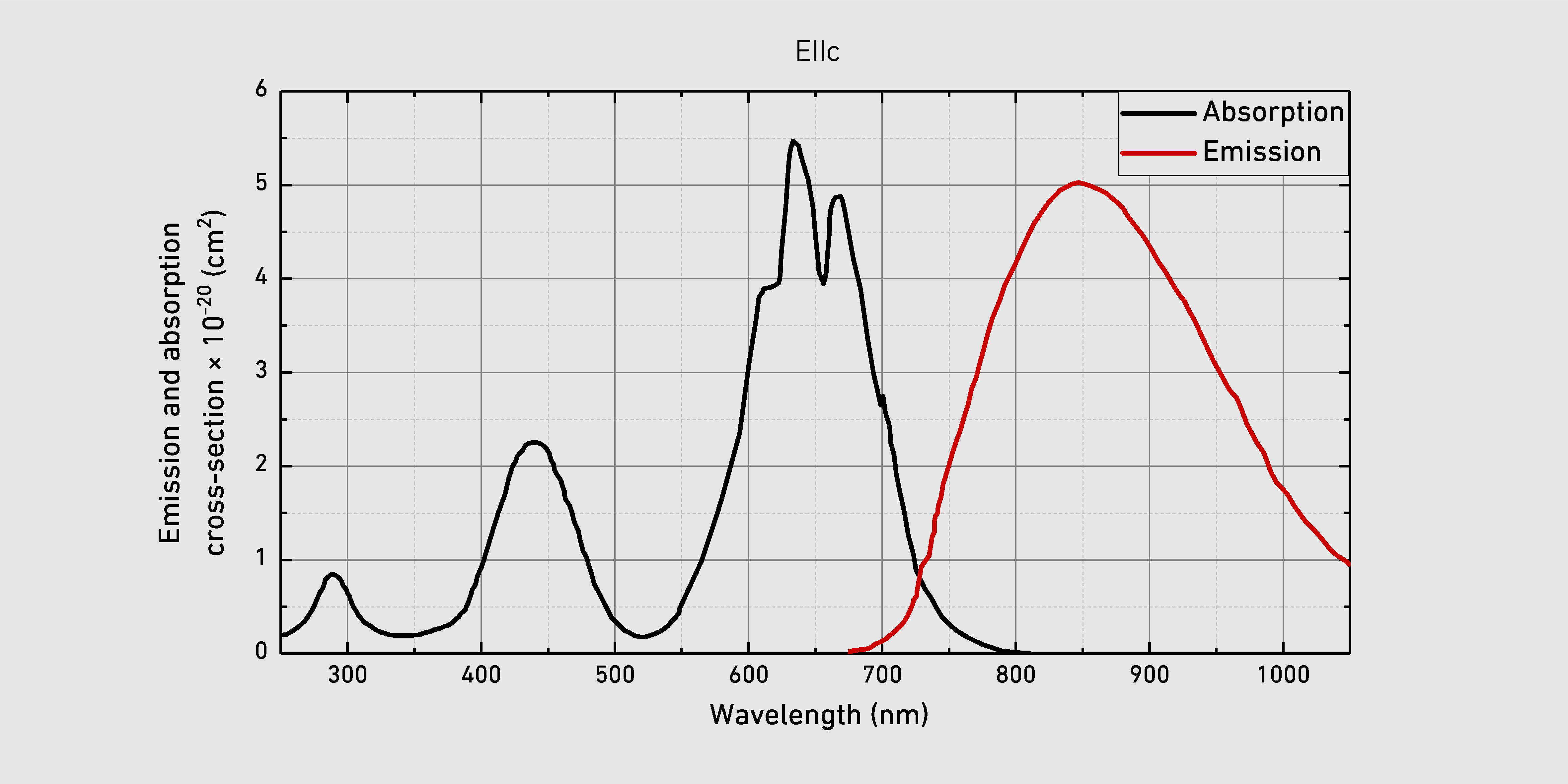 Cr3+:LiSAF gain medium possesses a broad emission band in the near-infrared that allows a widely tunable laser operation and generation of ~10 fs light pulses via mode-locking technique. Cr:LiSAF crystals can be grown with a very low loss level (<0,2%/cm). It enables to construct of high-Q-cavities, resulting in lasing thresholds as low as 2 mW and slope efficiencies above 50%.