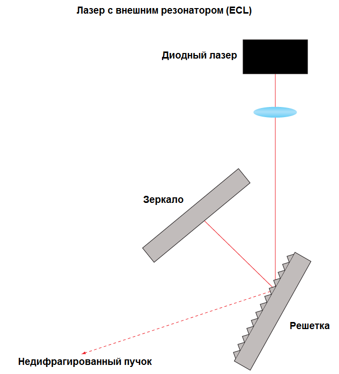 Рис.1 Решетка в ECL лазерах расположена за пределами активной среды |