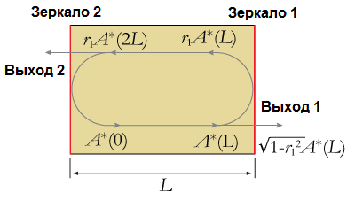 Усиление оптического поля при двукратном проходе резонатора длины L может быть выражено следующим образом: