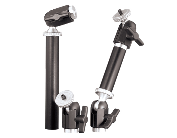 Предназначенные для доступа в труднодоступные места при стандартном креплении ¼-20, эти «руки» можно расположить под любым углом (180°) с помощью шарнирно-шарового узла. Полное вращение на 360° может быть достигнуто за счет наклона/поворота поворотного кулака вокруг вала. Положение можно зафиксировать с помощью удобной ручки или фиксирующего винта с защитой от несанкционированного доступа (шестигранный ключ входит в комплект). Области применения варьируются от монтажа оптических сборок до крепления камер. Доступны отдельные компоненты, а также пакеты с одним и двумя плечами. Комплект с одной рукой включает в себя два поворотных кулака и один стержень. Расширенный комплект для одной руки включает в себя три сустава и два стержня для увеличения досягаемости и дальности. Пакет с двумя руками включает в себя четыре поворотных кулака и два вала для отдельных требований к рукам, таких как выравнивание световодов с двумя ответвлениями. Нейлоновые шайбы снабжены шарнирами, чтобы не поцарапать анодированные поверхности. Доступны дополнительные аппаратные контакты (не входят в комплект).