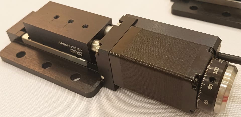 Модель поддерживает управление через контроллер Standa 8SMC5-USB, а также совместима с отечественным контроллером mDrive r9-1, что позволяет интегрировать устройство в существующие системы автоматизации и построить полностью российское решение.