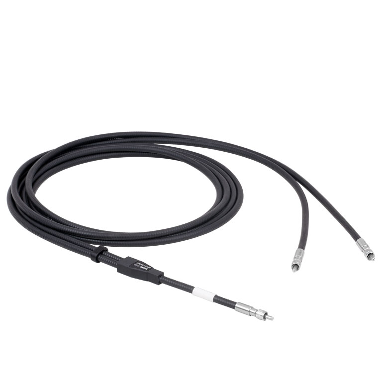 Общая длина жгута составляет 2 м, что позволяет гибко разводить плечи к различным зонам установки. Бифуркационная конфигурация удобна, когда требуется разделить световой поток между двумя независимыми каналами — например, для одновременного освещения двух образцов, организации опорного и измерительного плеча или подачи сигнала на два детектора. Надёжная защитная оболочка, качественная фиксация волокон и симметричная геометрия обеспечивают стабильность характеристик и хорошую воспроизводимость измерений.