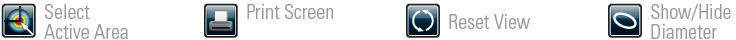 Дисплей с пучком в 2D формате: Снимок экрана, Возвращение в исходную конфигурацию, Показывать/спрятать диаметр пучка |