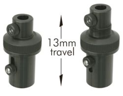 Держатель 3TPH-13 используется для регулировки высоты компонентов, закреплённых на стержнях 3MP и их эквивалентах. Грубая регулировка высоты осуществляется в диапазоне 50 мм. После грубой настройки высоты, стержень фиксируется в отверстии диаметром 12 мм. Надежная фиксация обеспечена двумя линиями контакта держателя со стержнем и осуществляется с помощью верхнего винта с отверстием под шестигранный ключ. Точная регулировка высоты осуществляется поворотом регулировочного кольца вручную. Один оборот кольца изменяет высоту на 1 мм. Диапазон точной регулировки – 13 мм. После точной регулировки положение держателя фиксируется с помощью нижнего винта. Резьбовое отверстие М6 в основании может быть использовано для крепления держателя 3TPH-13 к магнитным основаниям 3CMB, позиционерам и другим монтажным поверхностям с помощью адаптеров 3AH.